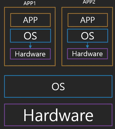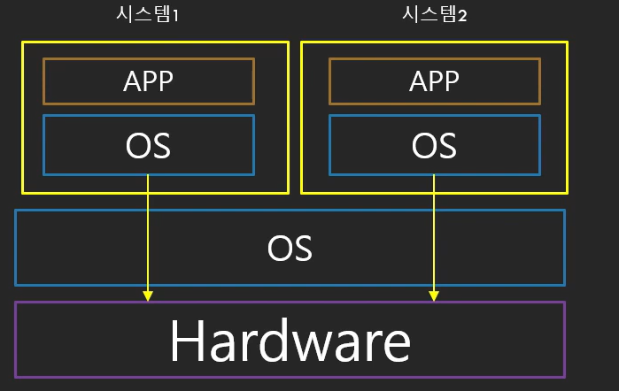 - 즉 일반적인 컴퓨터처럼 직접 os가 하드웨어에 설치된 상태로만 운영 가능했었음